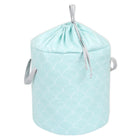 Stoffkorb mit Griff: Der praktische Aufbewahrungskorb in weiße Halbkreise auf Pastelmint kommt mit zwei handlichen Griffen aus Stoff, sodass er leicht getragen werden kann