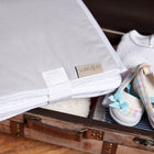 Ture og lange gåture med et lille barn kan hurtigt blive hektiske. For at du ikke skal gå glip af de smukke dage udendørs eller på rejsen og stadig er godt forberedt til enhver situation, er der et pladsbesparende pusleunderlag til på farten. Betrækket består af fire lag: bomuld, vandtæt voksdug, frotté og volumen fleece. Det betyder, at dit barn kan skiftes komfortabelt og fornuftigt polstret, mens det ligger ned. Takket være velcrolukningen kan rejsepuden hurtigt foldes sammen og opbevares i din taske. Udgaven er 60 x 60 cm i størrelsen, men kan også syes individuelt efter mål, hvis det ønskes.
