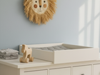 Med puslepladen fra KraftKids kan enhver HEMNES-kommode omdannes til en funktionel og behagelig puslestation. Puslepladen er lavet af 18 mm tyk spånplade, hvilket gør den meget robust og stabil. For at sikre, at din lille skat ikke kan komme til skade, er alle overflader helt glatte. Hjørnerne er børnevenligt afrundede og 10 cm høje på det højeste punkt. Derudover har vi lavet bagsiden buet, hvilket får puslepladen til at se meget elegant ud og gør den til noget særligt. Puslepladen er belagt med ufarligt laminat (hygiejnecertifikat foreligger). Og når din lille ikke længere har brug for bleer, kan puslepladen nemt tages af. Leveringen indeholder alle nødvendige skruer, tilbehør samt en monteringsvejledning.