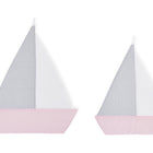 Sejlbådene er mellem 36 og 42 cm høje, er fremstillet i 100% bomuld på ydersiden og kan maskinvaskes. For at sikre, at de hænger stabilt og stift på væggen, er de yderligere forstærket indvendigt med let fleece. Indhold: 2 sejlbåde.