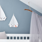 Sejlbådene er mellem 36 og 42 cm høje, er fremstillet i 100% bomuld på ydersiden og kan maskinvaskes. For at sikre, at de hænger stabilt og stift på væggen, er de yderligere forstærket indvendigt med let fleece. Indhold: 2 sejlbåde.