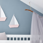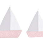 Sejlbådene er mellem 36 og 42 cm høje, er fremstillet i 100% bomuld på ydersiden og kan maskinvaskes. For at sikre, at de hænger stabilt og stift på væggen, er de yderligere forstærket indvendigt med let fleece. Indhold: 2 sejlbåde.