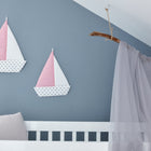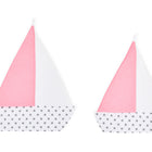 Sejlbådene er mellem 36 og 42 cm høje, er fremstillet i 100% bomuld på ydersiden og kan maskinvaskes. For at sikre, at de hænger stabilt og stift på væggen, er de yderligere forstærket indvendigt med let fleece. Indhold: 2 sejlbåde.