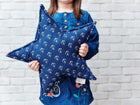 En stjernepude bør ikke mangle på børneværelset! Vores stjernepude ser ikke kun godt ud i din tipi, på sengen eller i hyggehjørnet, men kan praktisk talt også vaskes i vaskemaskinen. Fordi puden er fyldt med vaskbar fleece. Stjernen er 45 cm høj og fås i alle de stoffer, vi har til rådighed, så de matcher det købte telt eller sengetøj. For at gøre puden endnu mere personlig kan den også broderes med et navn - kontakt os venligst. Indhold: 1 stk stjernepude. Eventuelle pyntegenstande på vores billeder er ikke en del af produktet.